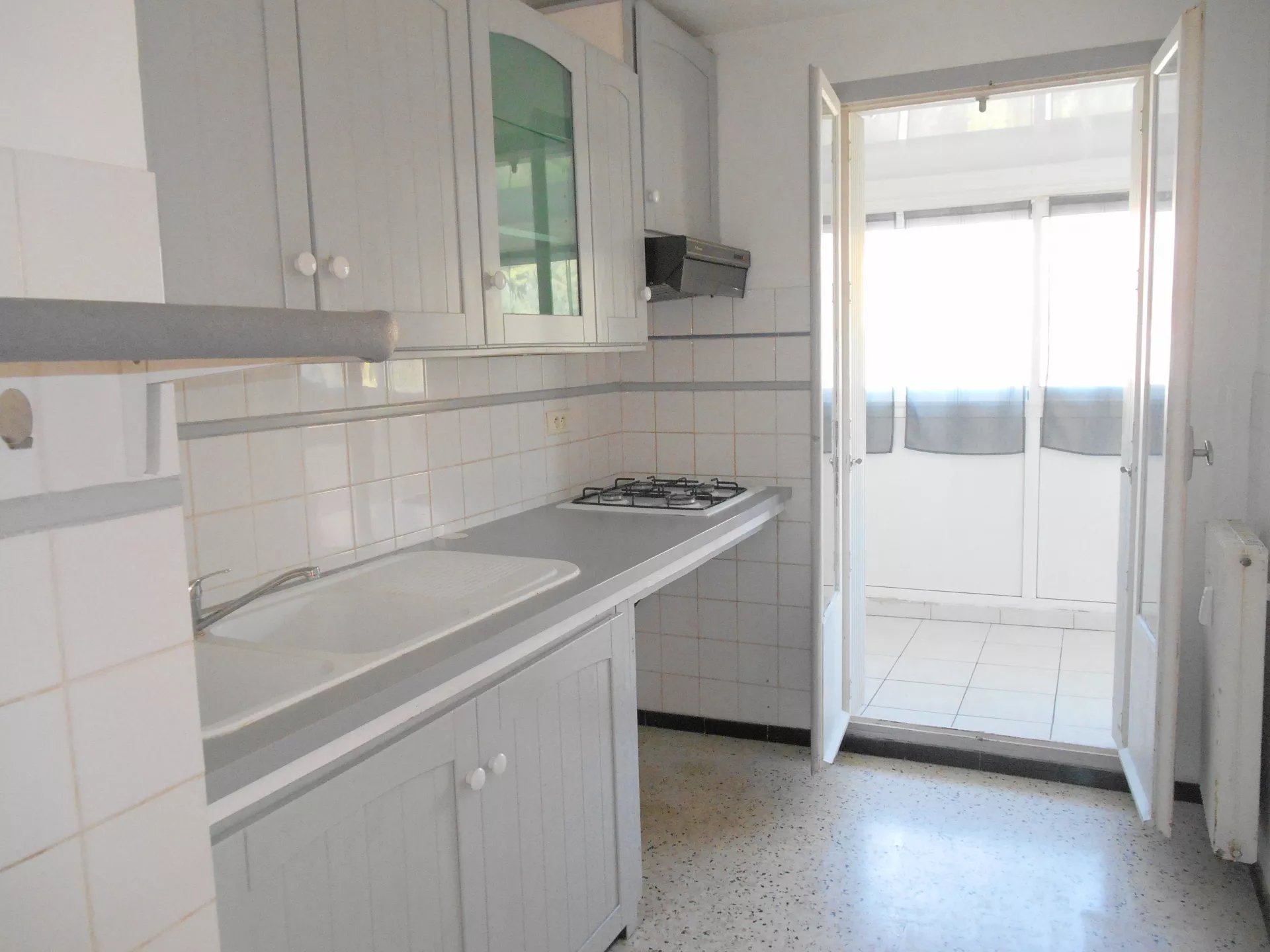 GRASSE OUEST - Proche Saint Jacques et pénétrante, dans résidence fermée, lumineux 2 pièces traversant en dernier étage avec ascenseur comprenant : entrée, bureau, cuisine aménagée, véranda, chambre avec placard, WC indépendant, salle de bains, séjour, terrasse ensoleillée.